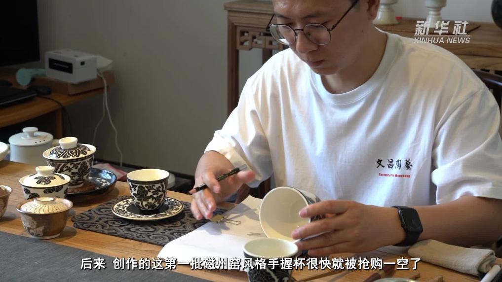 磁州窑创烧于北宋,鼎盛于宋金元,历经千年窑火不熄。河北省邯郸市峰峰矿区彭城镇是磁州窑文化主要发源地和生产地之一。“90后”张鹏宇是家里的第三代磁州窑从业者,他把磁州窑经典图案画于咖啡杯、茶杯、摆件等日用品上,让传统文化更加贴近生活。