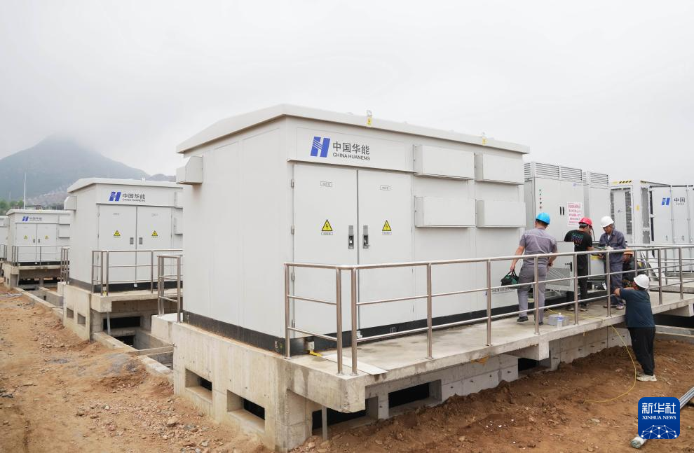 5月20日,工人在位于河北省平山县的“平山西柏坡百兆瓦级新型电力系统示范工程”建设工地施工。