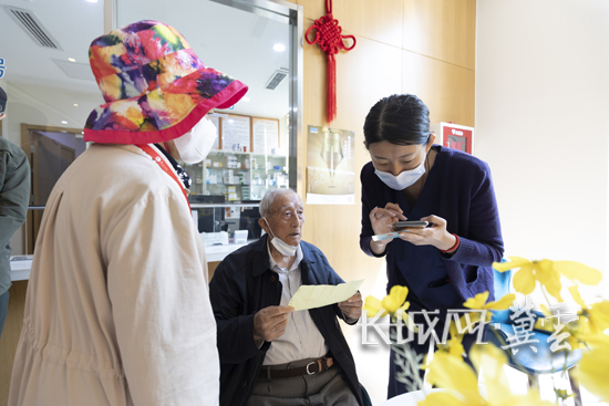 在香河大爱城医疗中心,老年人向工作人员咨询医疗业务。长城网·冀云客户端记者 张航 摄