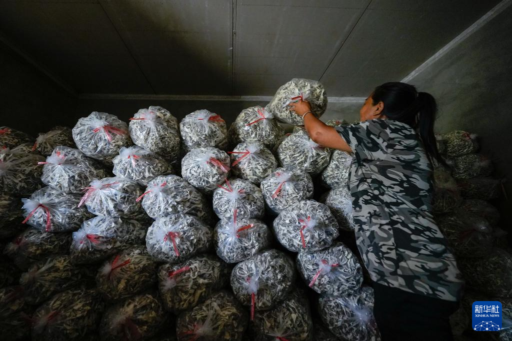 9月2日,农民在河北省迁西县白庙子镇黑洼村栗磨种植基地内整理栗蘑干。
