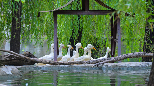 9月25日,记者来到动物园时,在黑天鹅池看到了凤头白鸭,它们全身羽毛呈白色,头部后羽毛有一簇突起,形似“凤冠”,活力十足。畅游水中的它们时而成双成对、时而潜入水下,憨态可掬的模样深得大家喜爱。