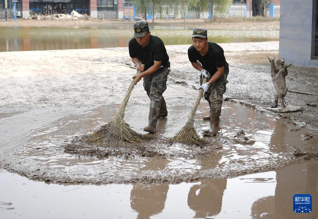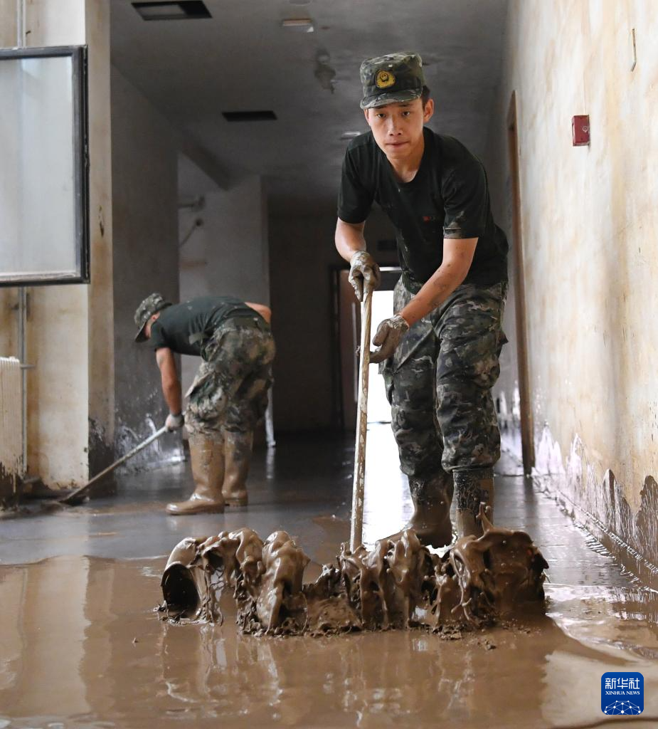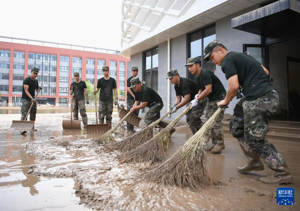 连日来,武警河北总队保定支队组织官兵在河北涿州中学开展清淤工作,为学校如期开学做好准备。