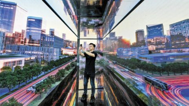 值得一提的是,河北展区序厅还设有11米长的雄安新区时空长廊,通过“led大屏 镜面玻璃”打造出沉浸式、交互式创意体验空间,展示雄安新区设立七年来的建设成果及未来场景。此外,展区内如影随形互动装置,通过体感、vr等前沿技术,让观众化身数字形象,感受河北梆子、唐山皮影、吴桥杂技等非遗文化的魅力。