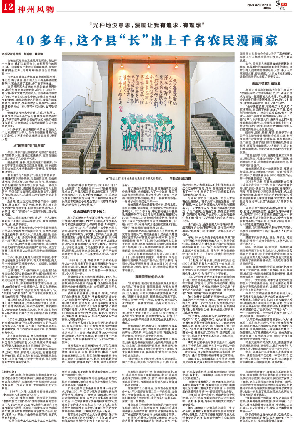 如今张爱学已经将农田流转出去,到石家庄的一所学校教书。他说:“漫画改变了我的人生,让我一个农民也可以成为老师。农村是我创作的最大源泉,每到节假日,我都要回到农村,看农作物生长,和亲戚朋友聊家常,以此激发灵感。”