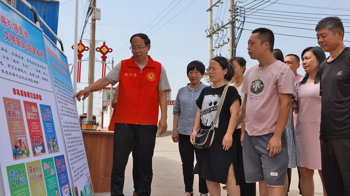今年以来,河北省邢台市新河县依托乡镇(村)新时代文明实践所(站),持续推进移风易俗,积极培育文明乡风、良好家风、淳朴民风。志愿者通过进村宣传、政策培训、文艺演出等形式,引导群众弘扬时代新风,倡导健康文明新生活。