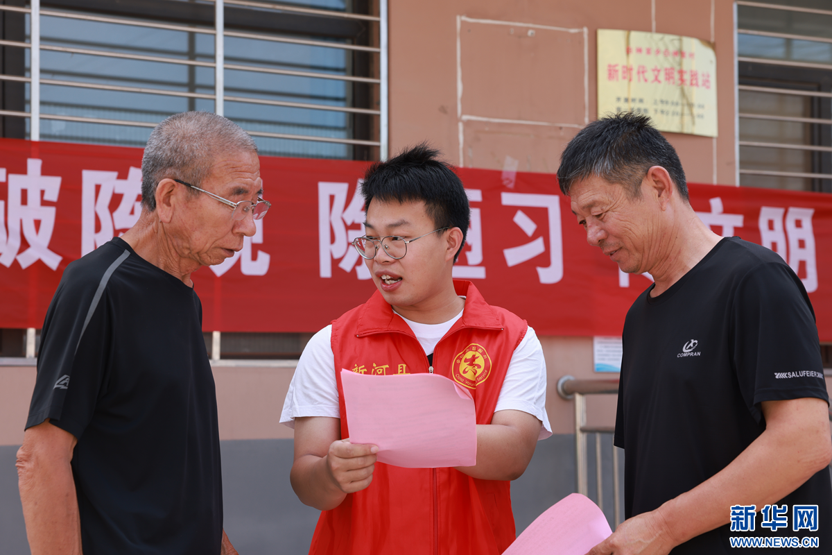 新河县白神首乡新时代文明实践所志愿者为村民讲解移风易俗倡议书内容。新华网发 李世强 摄