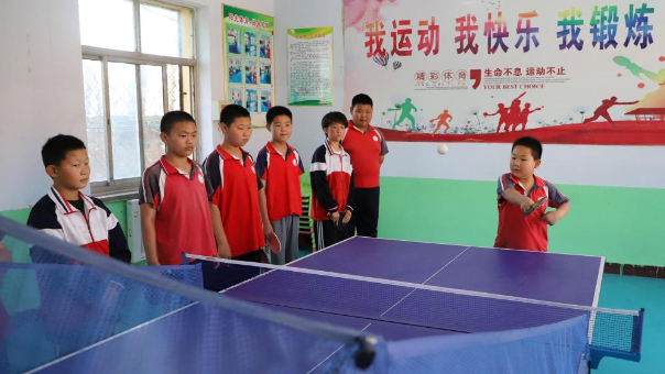 6月15日,在河北省沧州市吴桥县马库吏小学,学生练习乒乓球。