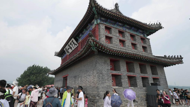 8月2日,游客在河北省秦皇岛市山海关区天下第一关景区游览。