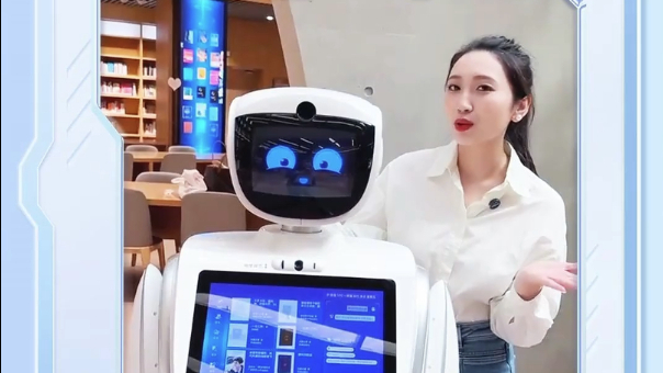 这位就是咱们的第二位阅读搭子“小图”,它可是咱们馆里的小明星,不管你是想借书、还书,还是导航,都可以找它——“小图”。你好“小图”。