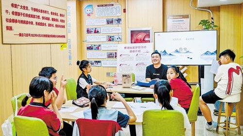 每周五晚,雄安新区容东片区罗河社区梦想书坊举办公益读书会,由专业老师为居民讲解经典书籍著作,成为社区党建联建的品牌活动之一。图为6月14日的读书会现场。记者 耿辉摄