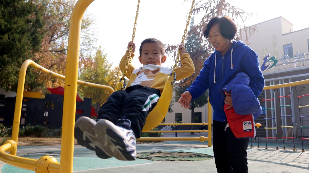 11月7日,居民在团结里社区公园游玩。受访单位供图。
