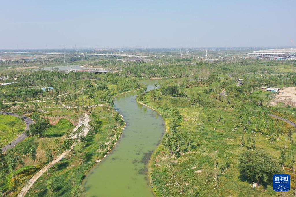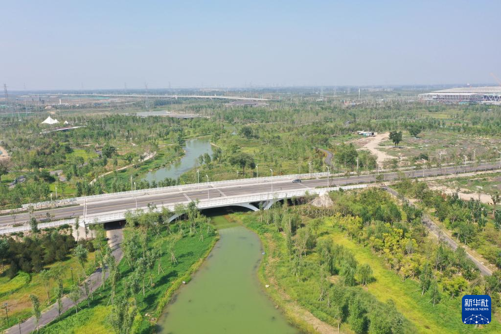 河北雄安新区启动区中央绿谷及东部溪谷生态廊道一角(7月18日摄,无人机照片)。