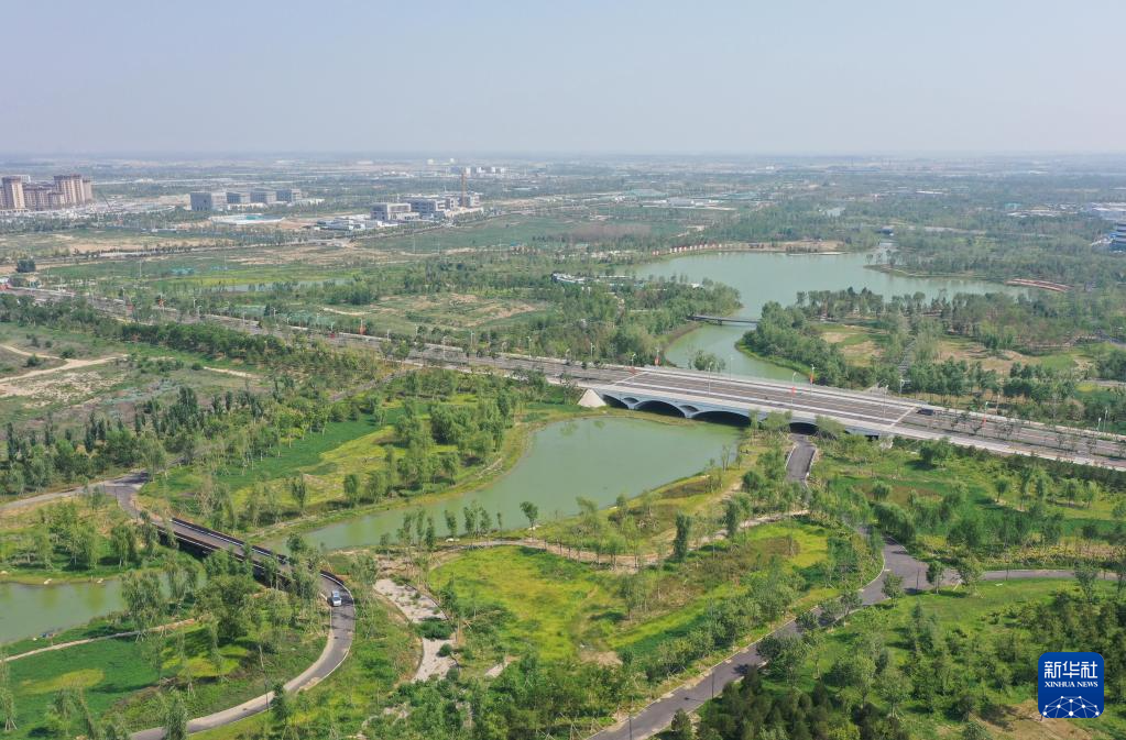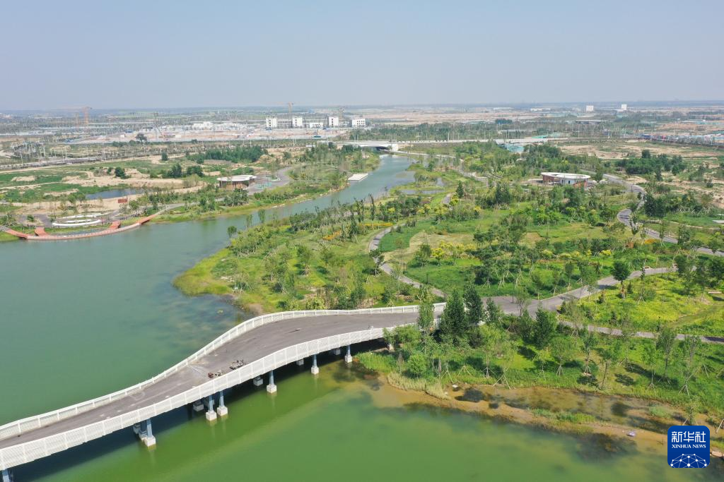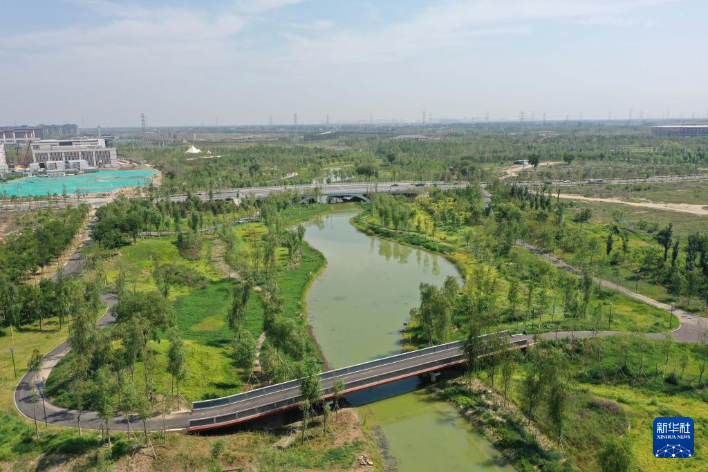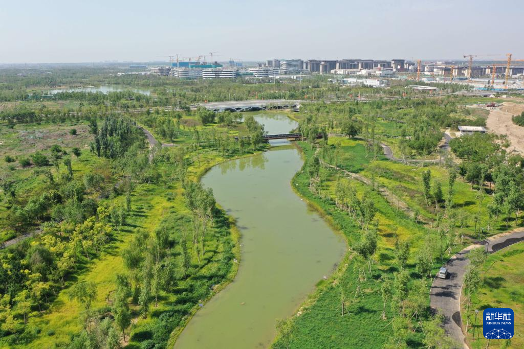 河北雄安新区启动区中央绿谷及东部溪谷生态廊道一角(7月19日摄,无人机照片)。