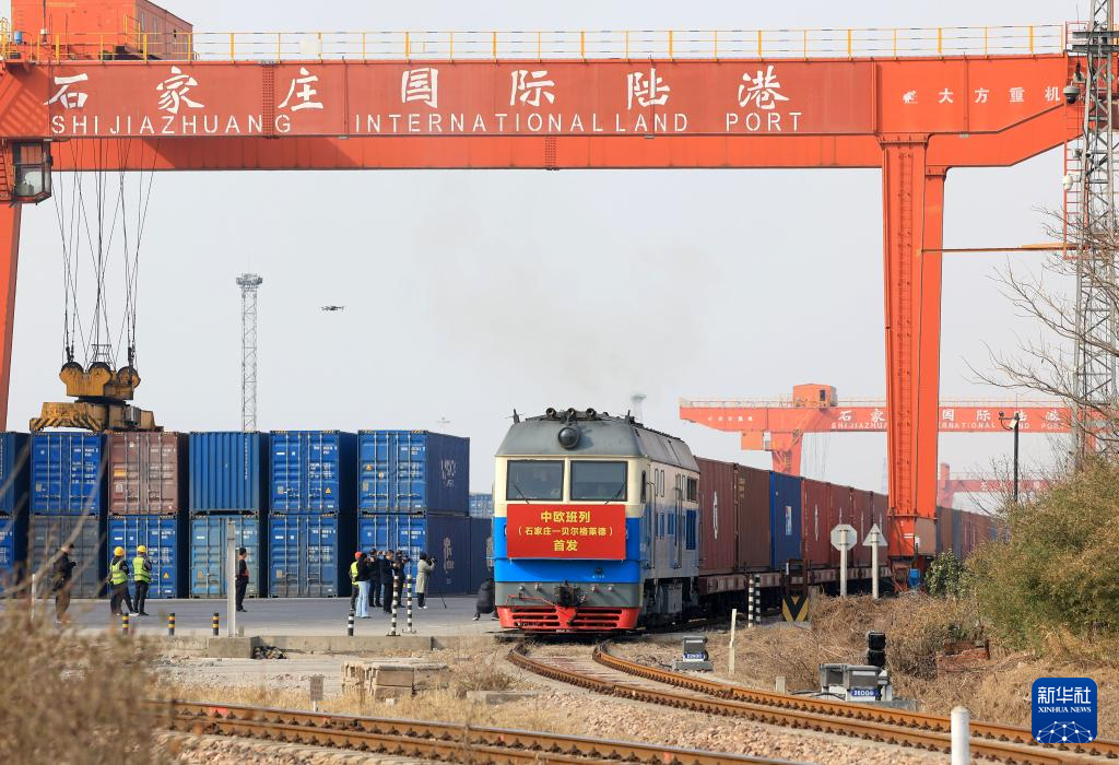 中欧班列从石家庄国际陆港驶出。新华社发(梁子栋 摄)
