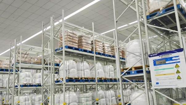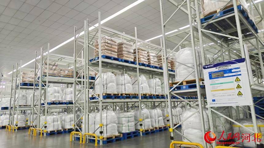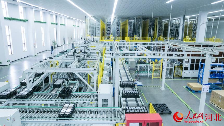 河北唐山国轩电池有限公司原材料立体库。记者 杨文娟摄