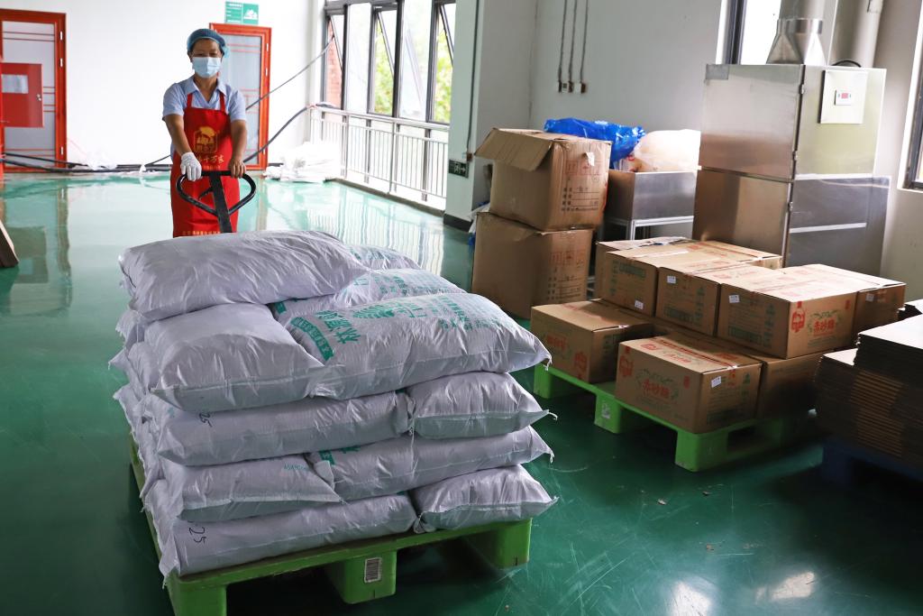 8月25日,涿州杨林食品有限公司员工正在搬运产品。(受访者供图)