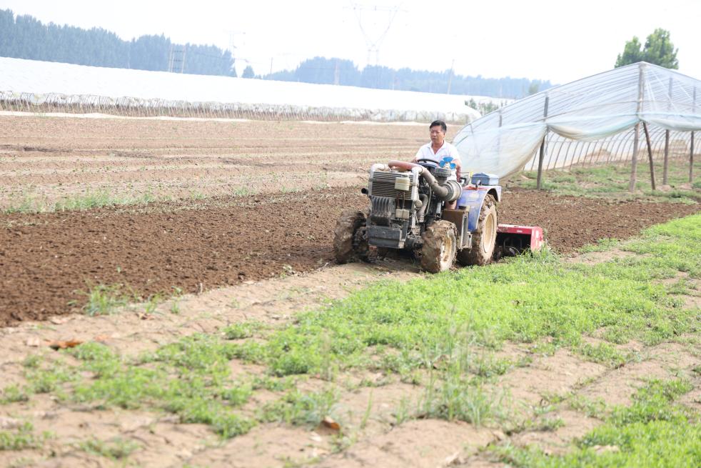 在河北省邢台市南和区南葭村的田间地头,种植大户白占德正操作农业机械进行犁地作业。受洪灾影响,他种植的100多亩玉米受灾,他准备重新种植甘蓝、香菜等蔬菜。“种植这些生长周期较短的蔬菜,不耽误冬小麦播种。”白占德说。