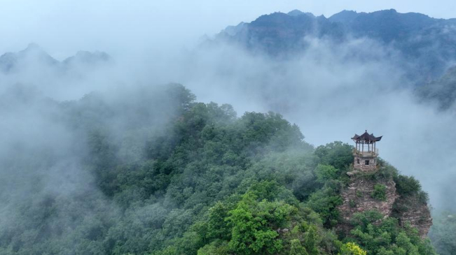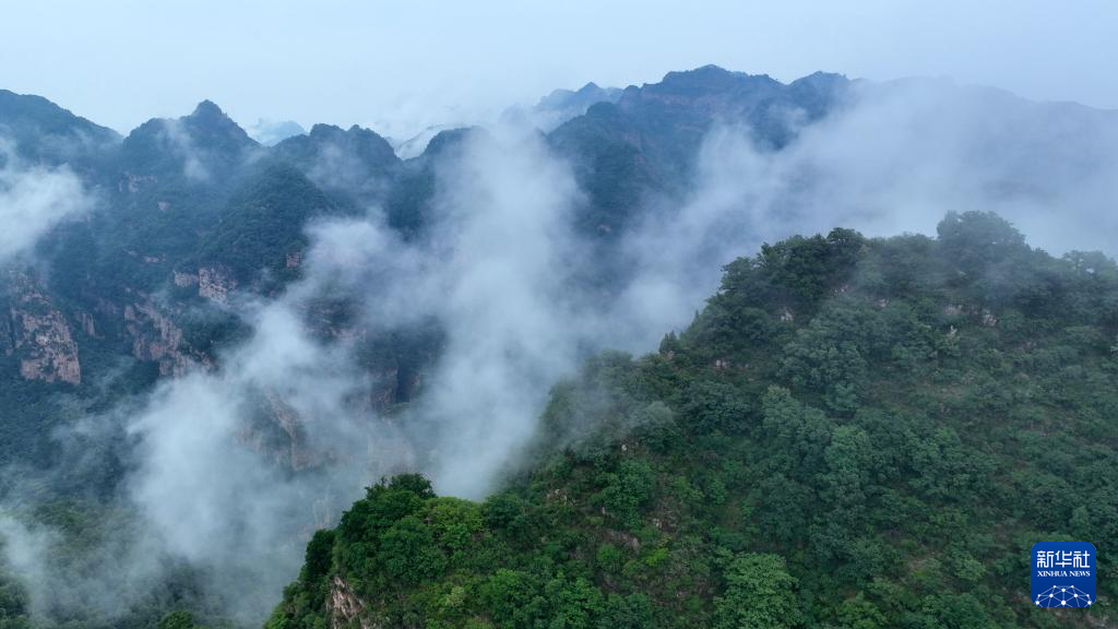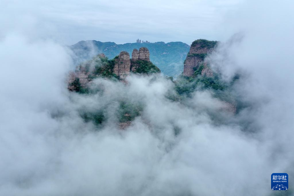 受雨水天气影响,位于河北省邢台市西部太行山深处的紫金山景区出现云海景观,层层云海在奇险峻秀的山峦间翻腾,群山在云海中若隐若现。