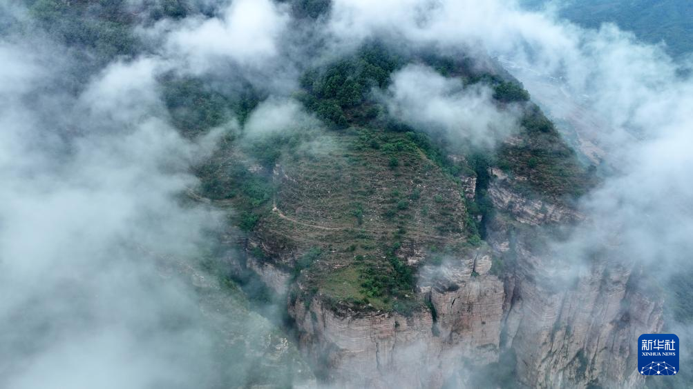 河北省邢台市紫金山景区云海景观(6月21日摄,无人机照片)。