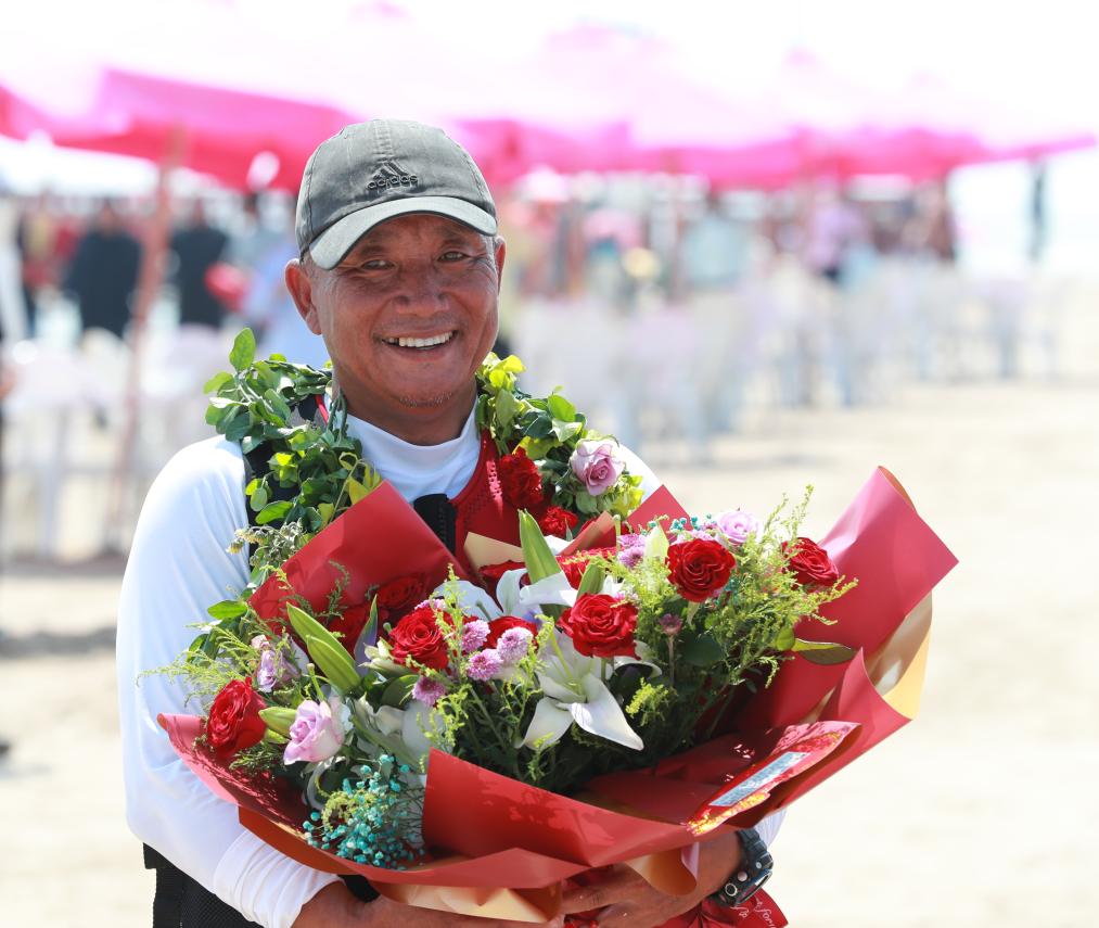 为了这次穿越,杨建新从今年年初就在准备。登岸的一刻,沙滩上欢呼声瞬间响起,亲友们带着花环涌向这位来自大海的孤勇者。可他已经没有力气呼喊,只能向大家挥手致谢。