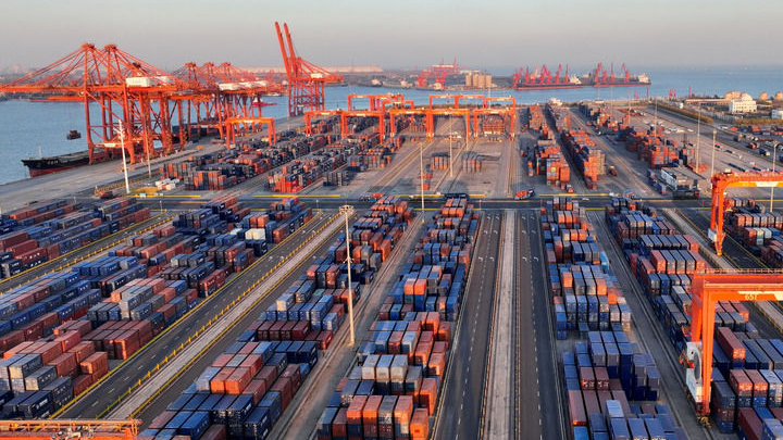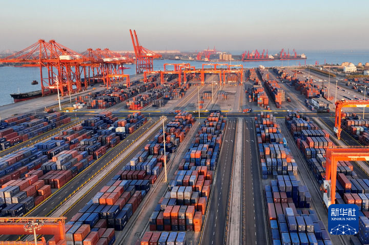 11月5日拍摄的唐山港京唐港区集装箱码头堆场。