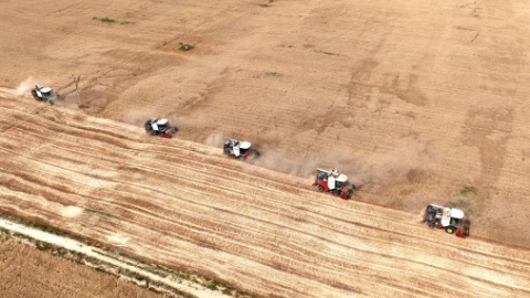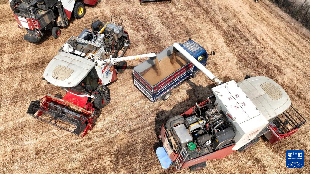 时下,河北省邢台市隆尧县61万亩小麦正值收获季,当地农民抢抓晴好天气开展机收作业。
