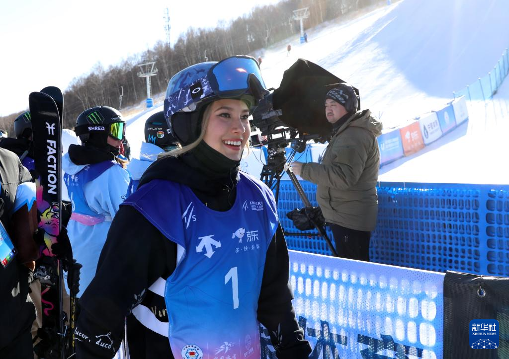 2023年12月9日,中国队选手谷爱凌在赛后。当日,在河北省张家口市崇礼区云顶滑雪公园举行的2023自由式滑雪及单板滑雪u型场地世界杯——自由式滑雪u型场地女子组决赛中,谷爱凌夺得冠军。新华社记者 杨世尧 摄