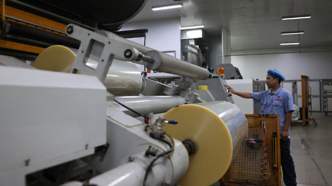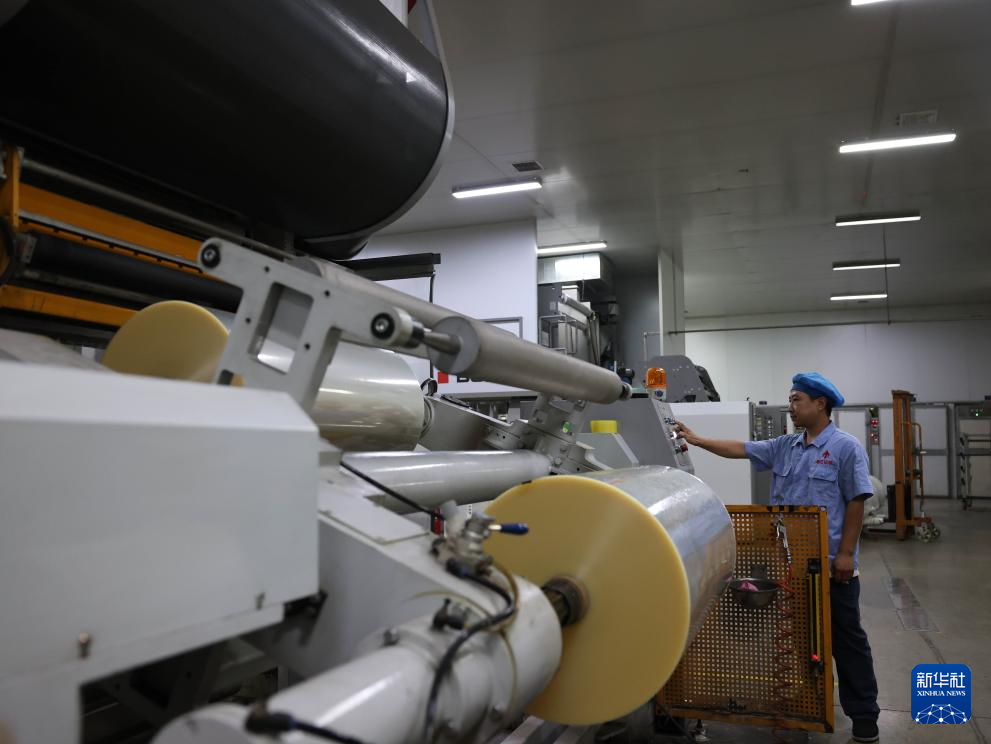 8月25日,工人在河北省邢台市宁晋县河北晶达包装材料有限公司生产车间工作。