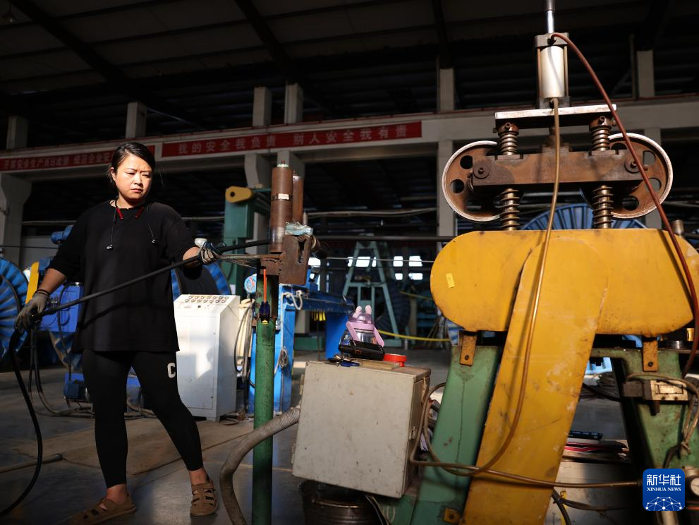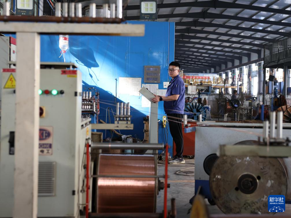 8月24日,工人在河北省邢台市宁晋县金世纪电缆集团有限公司生产车间工作。