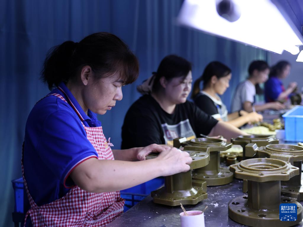 8月24日,工人在河北省邢台市宁晋县河北联硕机械制造有限公司蜡模车间工作。