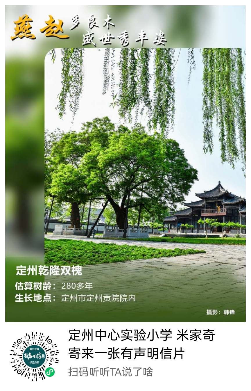 定州贡院,位于定州市北城区,是我国清代举办科举考试的场所。步入定州贡院,首先映入眼帘的是两棵十米多高的古槐树。古槐树曾为考生提供纳凉歇脚地,见证了无数考生的赶考之路。这两棵古槐树有约280年的树龄,如今仍枝繁叶茂。