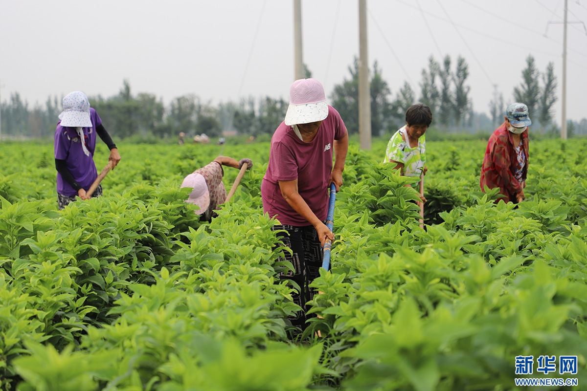 种植户在中草药种植基地除草。新华网发 马天龙 摄