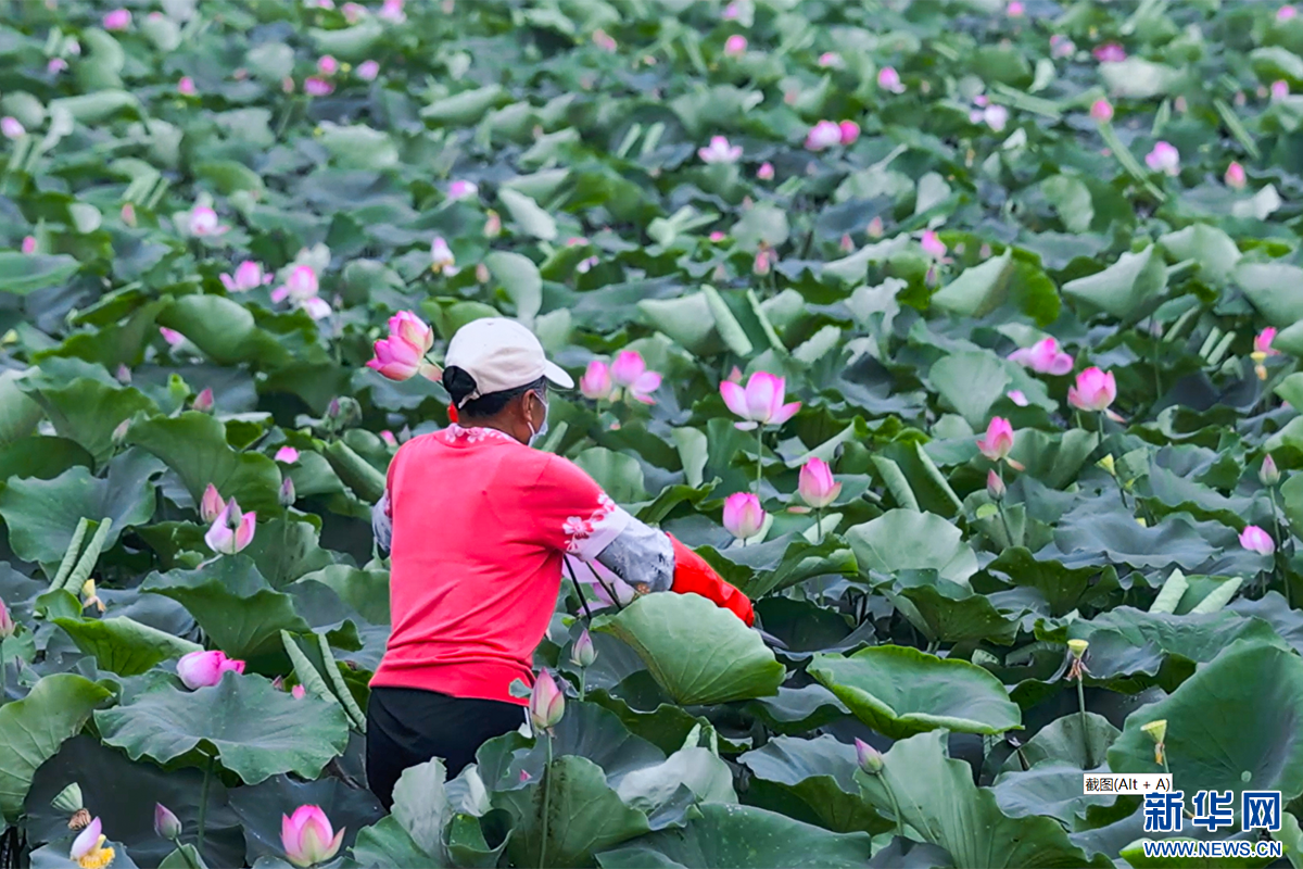 种植户采摘荷花供应花卉市场。新华网发 朱磊 摄