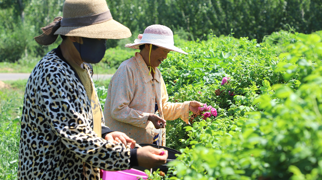 种植户采摘玫瑰花。新华网发 马天龙 摄