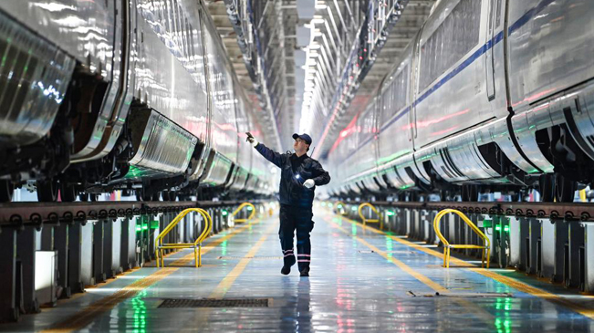 在河北省大厂回族自治县的动车运用所,这样的情景每天都在上演:当乘客平安抵达目的地,在京唐、京滨段上运行了一天的“和谐号”动车驶回车库,经过一番精细检修后,次日继续飞驰在运送旅客的轨道上。