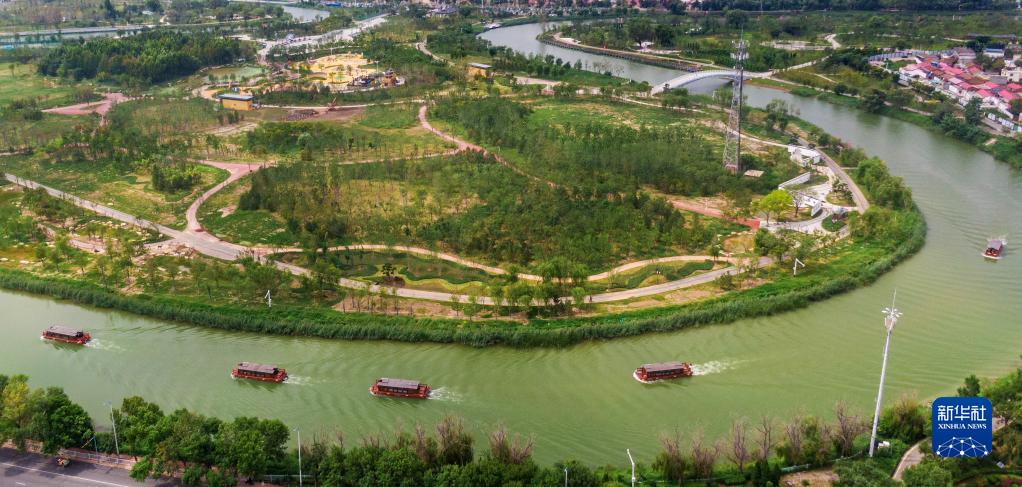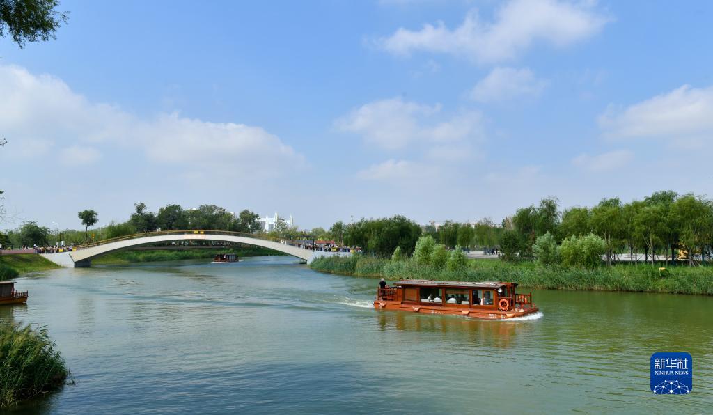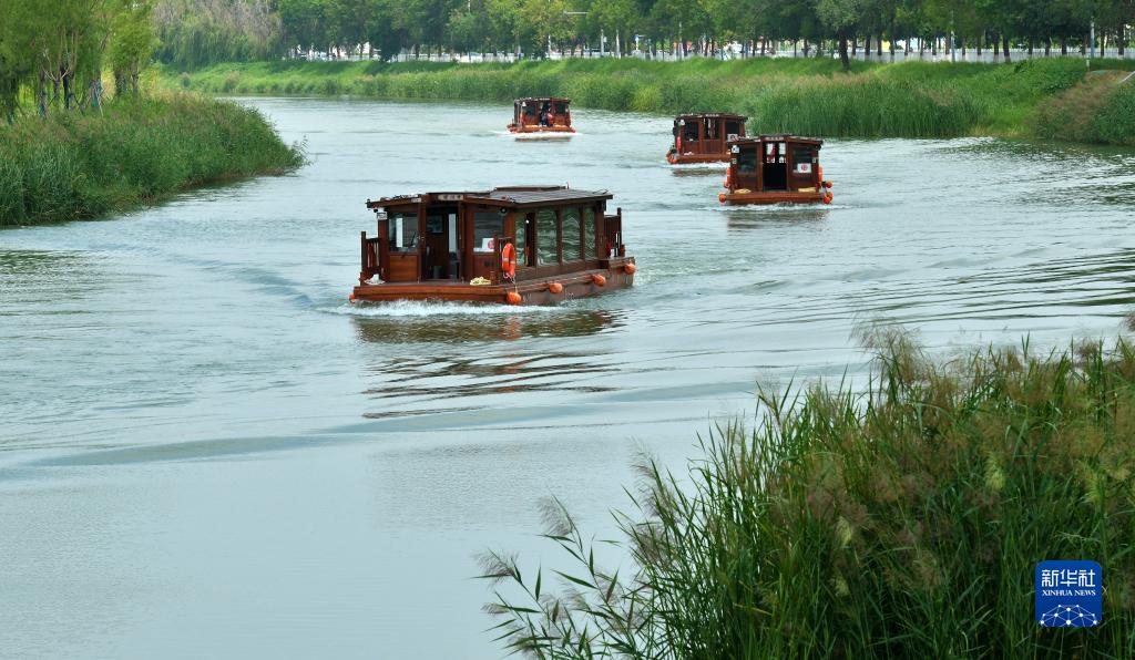 9月1日,游船在京杭大运河沧州中心城区段航行。新华社发(苑立伟摄)
