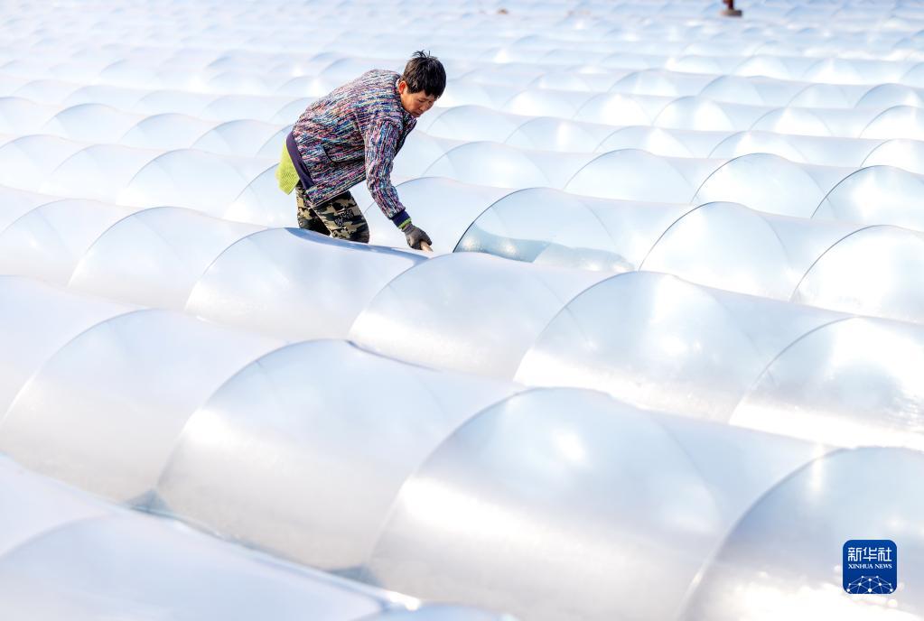 3月2日,唐山市丰南区岔河镇三神庄村的农民在田间给马铃薯棚膜覆土。