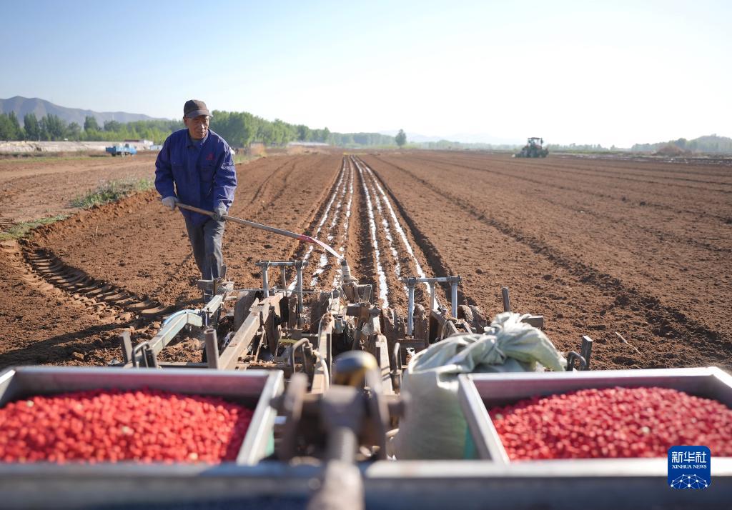 暮春时节,河北省滦州市的农民抢抓农时播种花生,田间地头呈现出一派繁忙景象。据介绍,滦州市今年预计播种花生面积将达20多万亩。