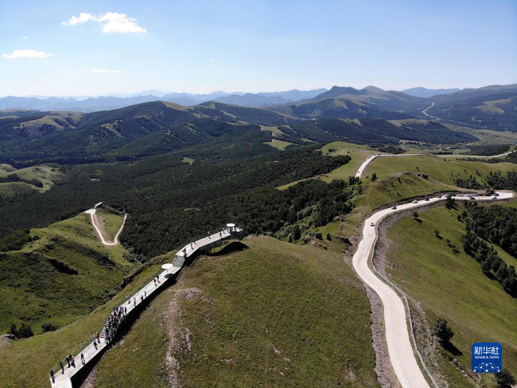 夏日,河北省承德市丰宁满族自治县坝上草原迎来大批游客。丰宁坝上地区夏季气候凉爽宜人。近年来,丰宁实施封山育林、张承坝上造林、千松坝造林等项目,良好的生态环境为旅游开发提供了得天独厚的自然条件,当地先后建设了七彩森林、大汗行宫、中国马镇旅游度假区、千松坝森林公园等景区,自然风光与人文景观交相辉映,成为游客夏季避暑休闲的度假胜地。新华社记者 骆学峰 摄