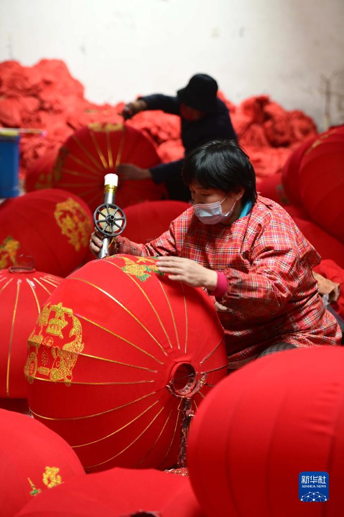 春节临近,河北省石家庄市藁城区屯头村的宫灯生产厂家加紧生产,供应节日市场。藁城宫灯历史悠久、产品丰富,2006年被列入河北省级非物质文化遗产名录。目前,藁城宫灯年产量近1亿对,销往海内外市场。新华社发(陈其保 摄)