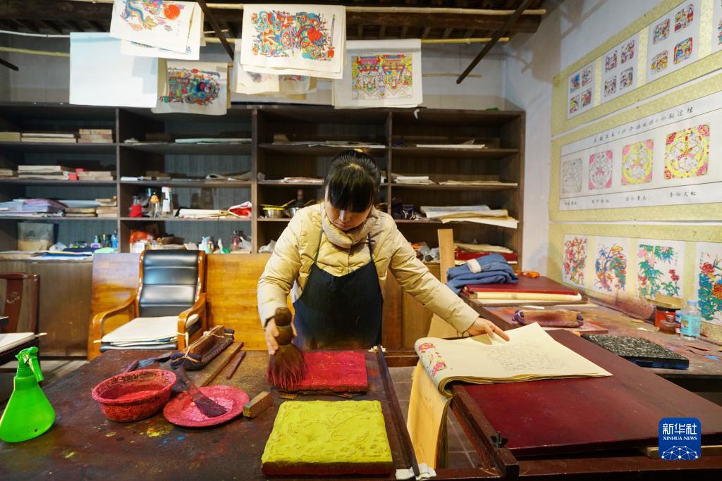 武强木版年画是河北省武强县传统民间工艺品,是我国民间特有的一种绘画体裁,2006年被列入第一批国家级非物质文化遗产名录。近年来,武强县以武强年画博物馆为载体,不断推动木版年画制作技艺的传播与传承,同时结合现代技术推出一系列文创产品,为传统年画注入新的活力。新华社记者 牟宇 摄