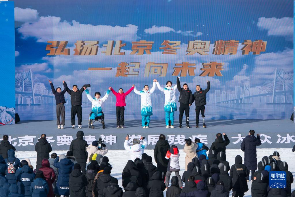 1月6日,冬残奥运动员、残疾人代表和工作人员代表在启动仪式上情景讲述“弘扬北京冬奥精神 一起向未来”。新华社记者 才扬 摄