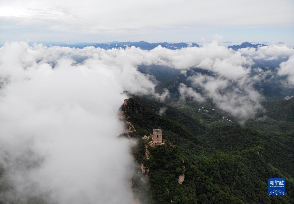 8月9日拍摄的金山岭长城云海景观(无人机照片)。