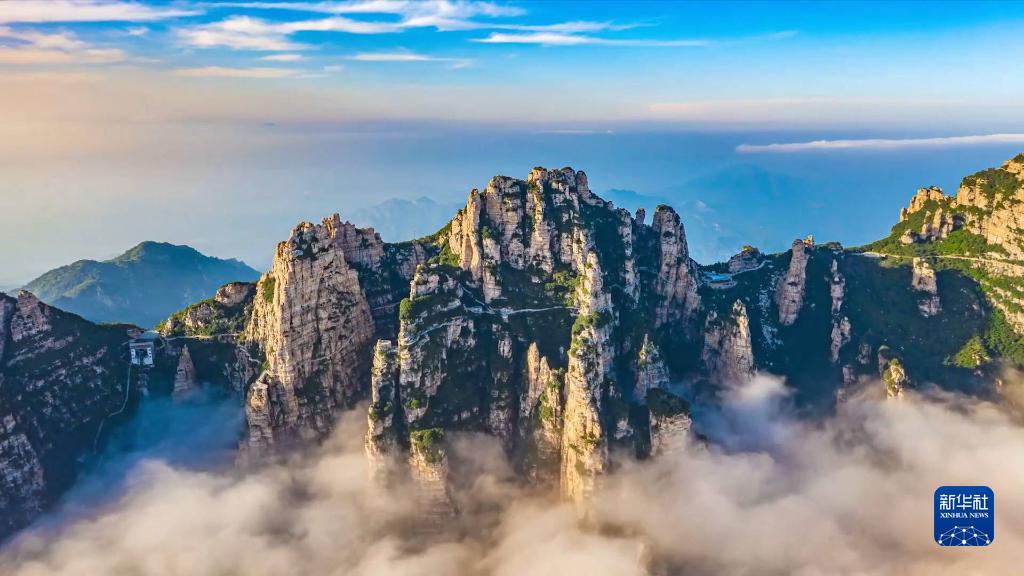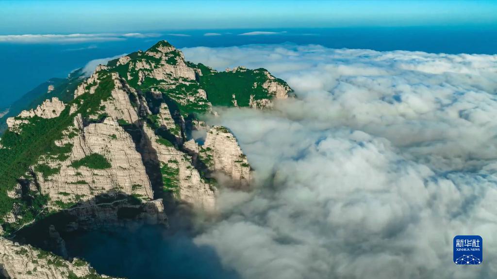 近日,河北省涞源县境内白石山景区呈现云海景观,层层云海在奇险峻秀的山峦间蒸腾,如梦如幻,令人陶醉,宛如一幅精美绝伦的自然画卷。