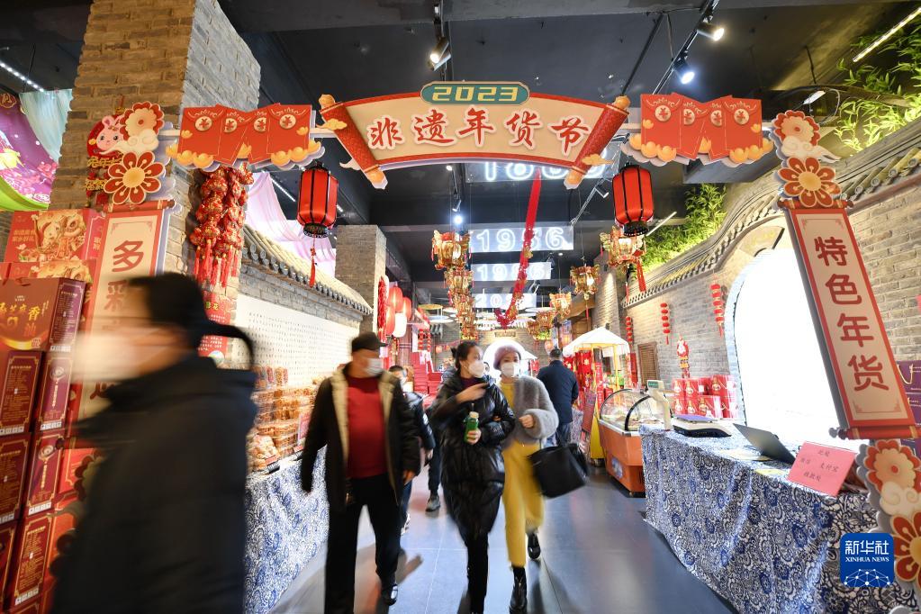 1月12日,顾客在河北省唐山市丰润区2023“非遗”年货节现场游览。