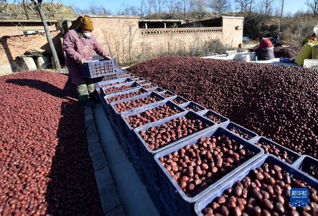 12月13日,河北省石家庄市行唐县九口子乡西玉女村的农民在搬运大枣。