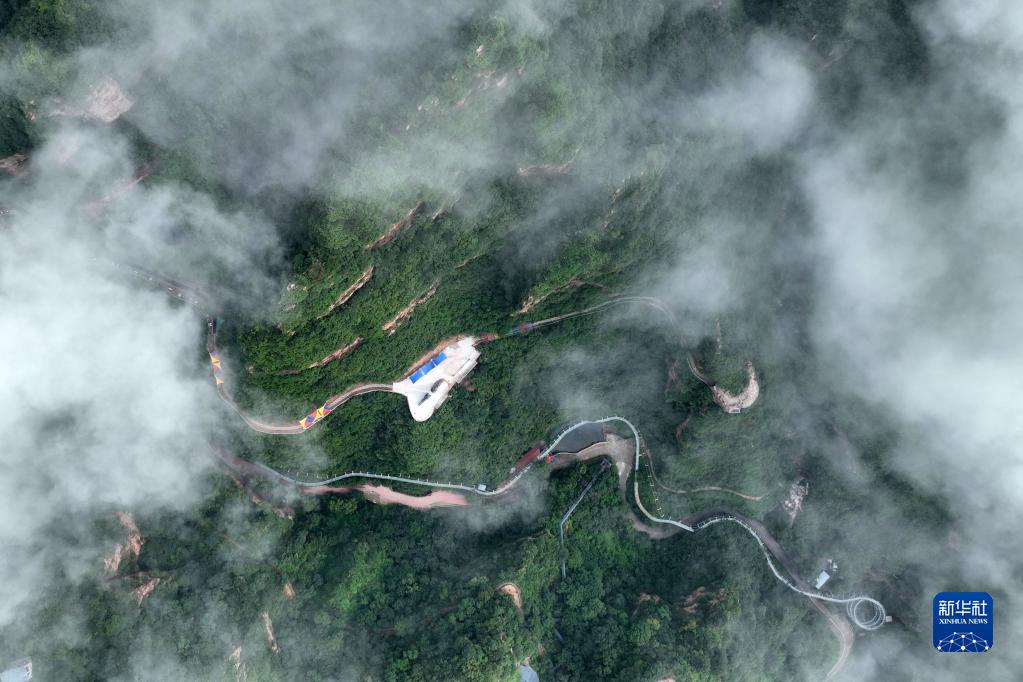 这是8月14日在河北省邢台市天河山景区拍摄的云海景观(无人机照片)。
