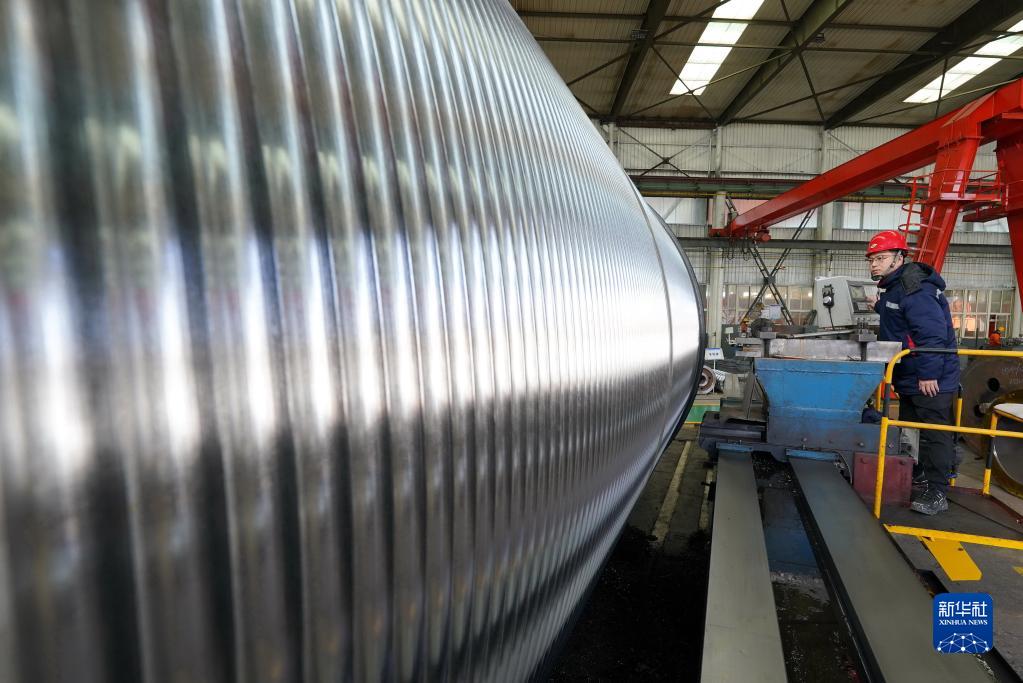 2月14日,工人在唐山市丰润区一家起重设备制造企业的生产车间工作。