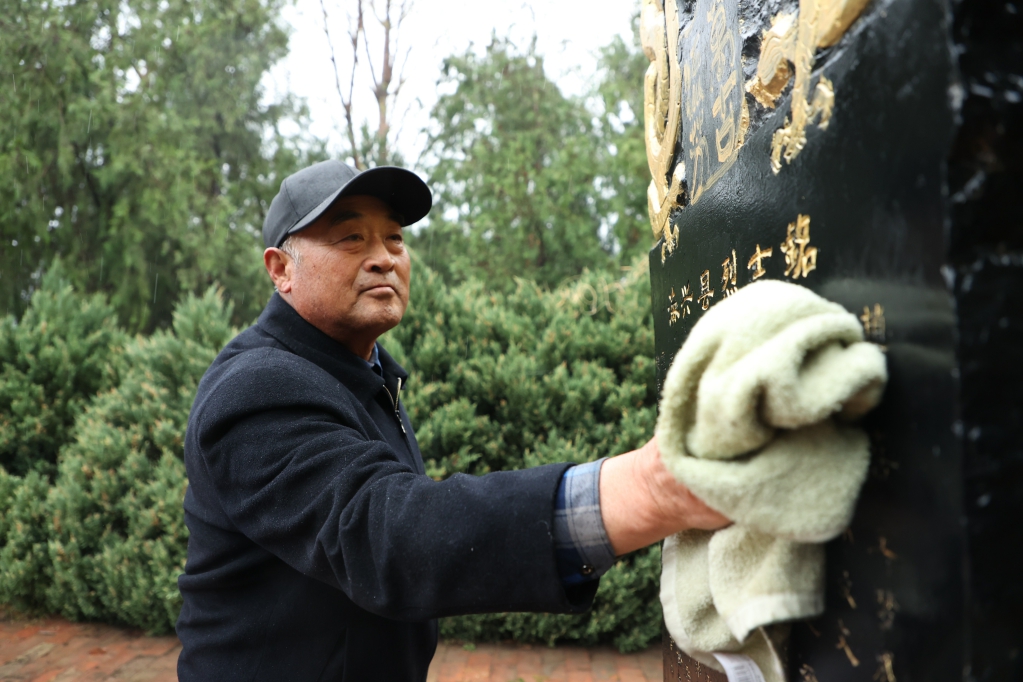 清明时节,河北海兴县小山乡曹庄子村74岁村民张连胜,又像往常一样来到村边烈士陵园祭扫。这座由张连胜父亲自费修建的烈士陵园里长眠着曹庄子和周边村庄的23位烈士。(新华社记者王民)