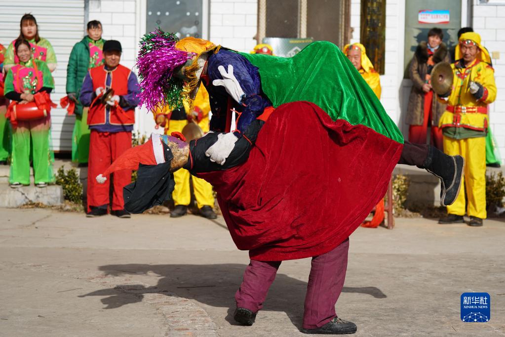 新春佳节临近,在太行山深处的河北省邢台市信都区将军墓镇内阳村,村民们紧锣密鼓排练锣鼓、腰鼓、跑驴、扭秧歌、划旱船等传统乡艺节目,为即将举办的“村晚”做准备。内阳村历史悠久,村中有古戏楼、古院落等历史建筑,被列入第五批中国传统村落名录。新华社发(田晓丽 摄)